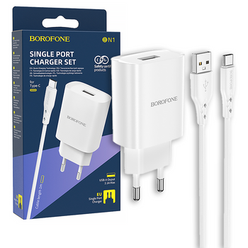 ( ilość produktów: 42 )Borofone Ładowarka sieciowa BN1 Innovative - USB - 2,1A z kablem USB na Typ C biała